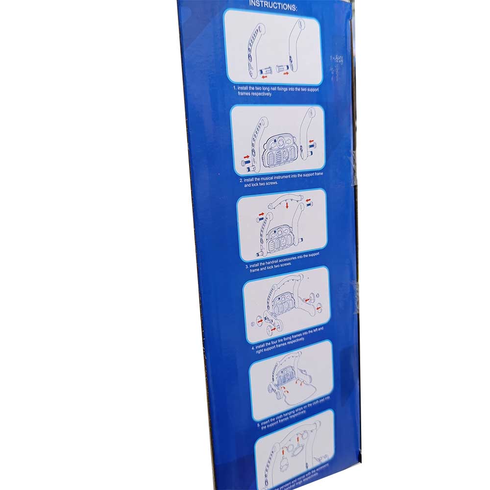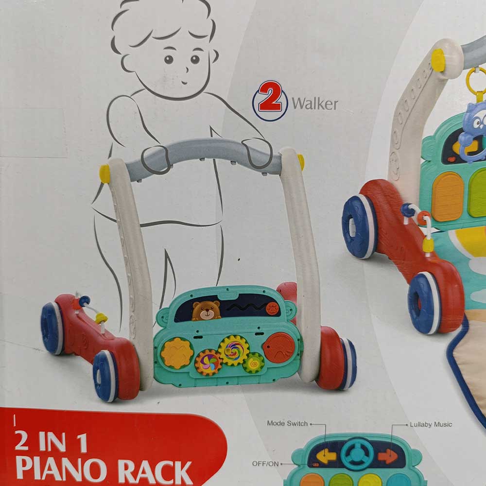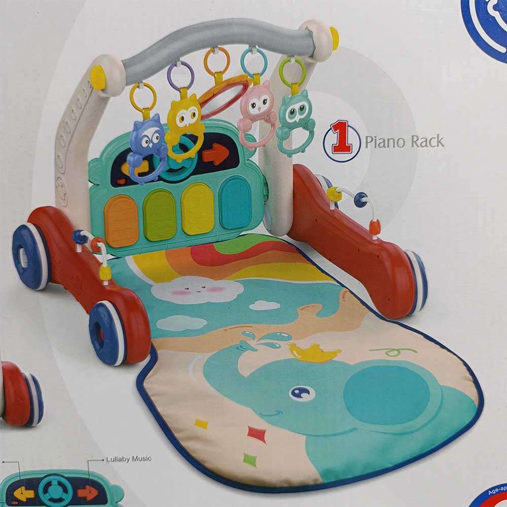 دارای یک عدد پیانو است دارای تشک راحت و نرم است نیاز به ۳ عدد باتری قلمی دارد قابلیت تنظیم صدای موسیقی دارد قابلیت تقویت قوای جسمی توسط پیانو دارد دارای محل آویزان کردن جغجغهها دارد ساخته شده از پلاستیک ABS محکم و مقاوم است طراحی بروز شده و ارگونومیک برای جلوگیری از انحراف پاها دارد بازی بصورت دراز کش، نشسته، درازکش روی شکم و ایستاده است
